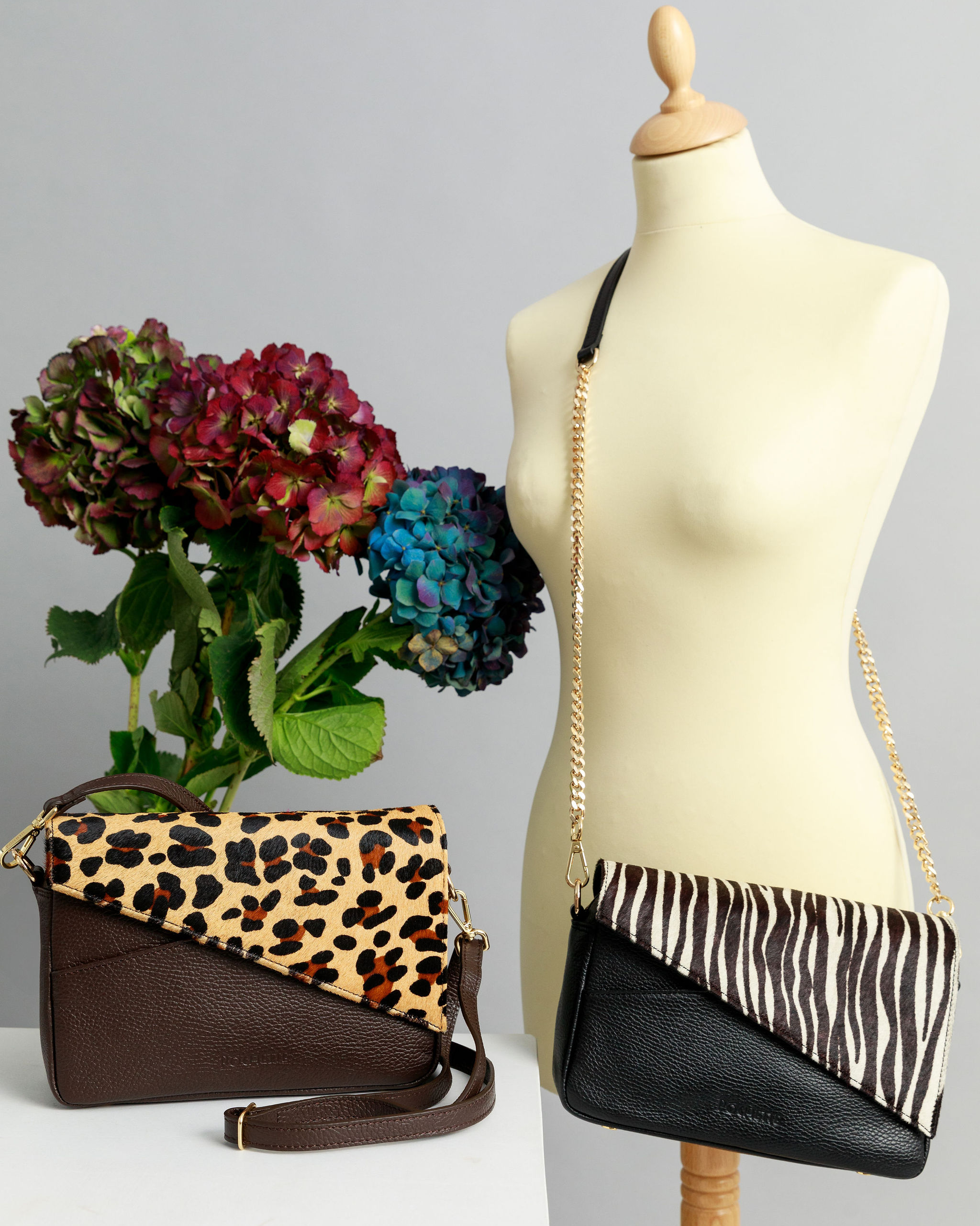 Style Your Animal Print CrossbodyFirst, choose which colour Danu bag you would like. Then, pick your statement cover - leopard or zebra print in pony skin (cowhide leather). Finally, complete your look with a crossbody strap of your choice.