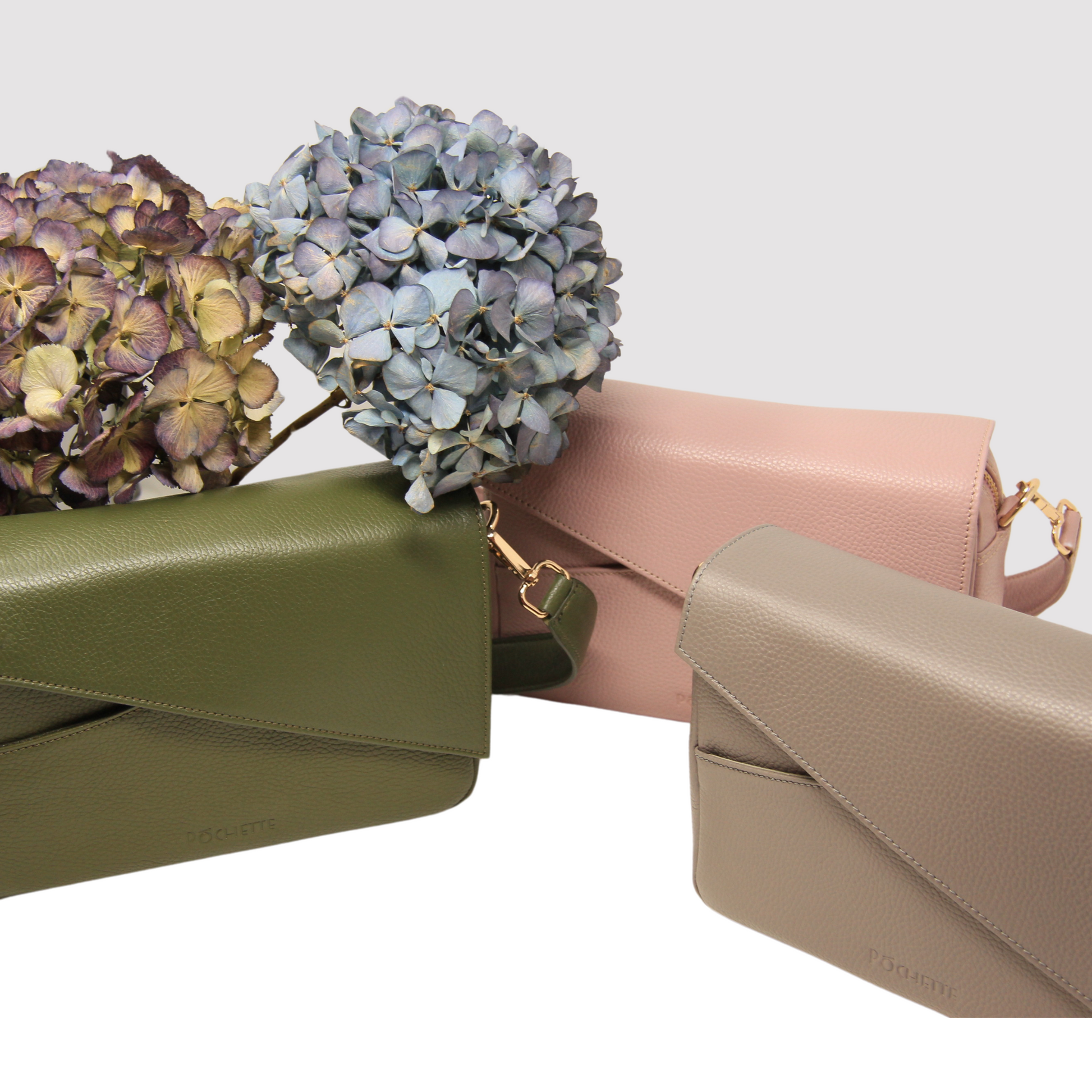 - And a pocket flap at the front debossed with the Póchette logo, which is large enough to hold your phone, wallet or glasses.